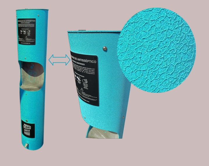 Dispensadores de álcool gel pintados com a nossa tinta em pó termoendurecível TU08 6588